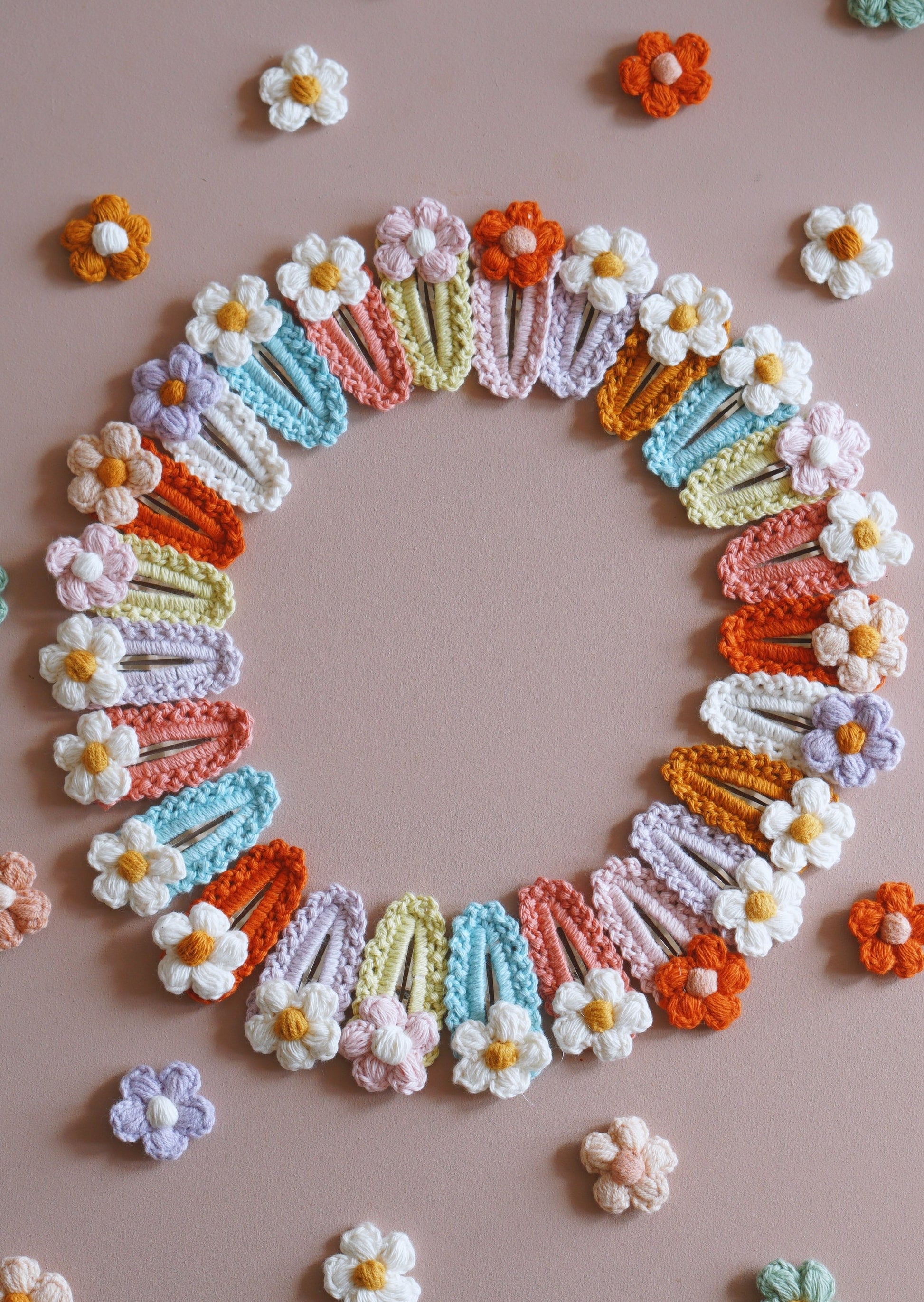 Handmade Crochet Flower Hair Clips – the perfect accessory to add a touch of sweetness to your little one's look.