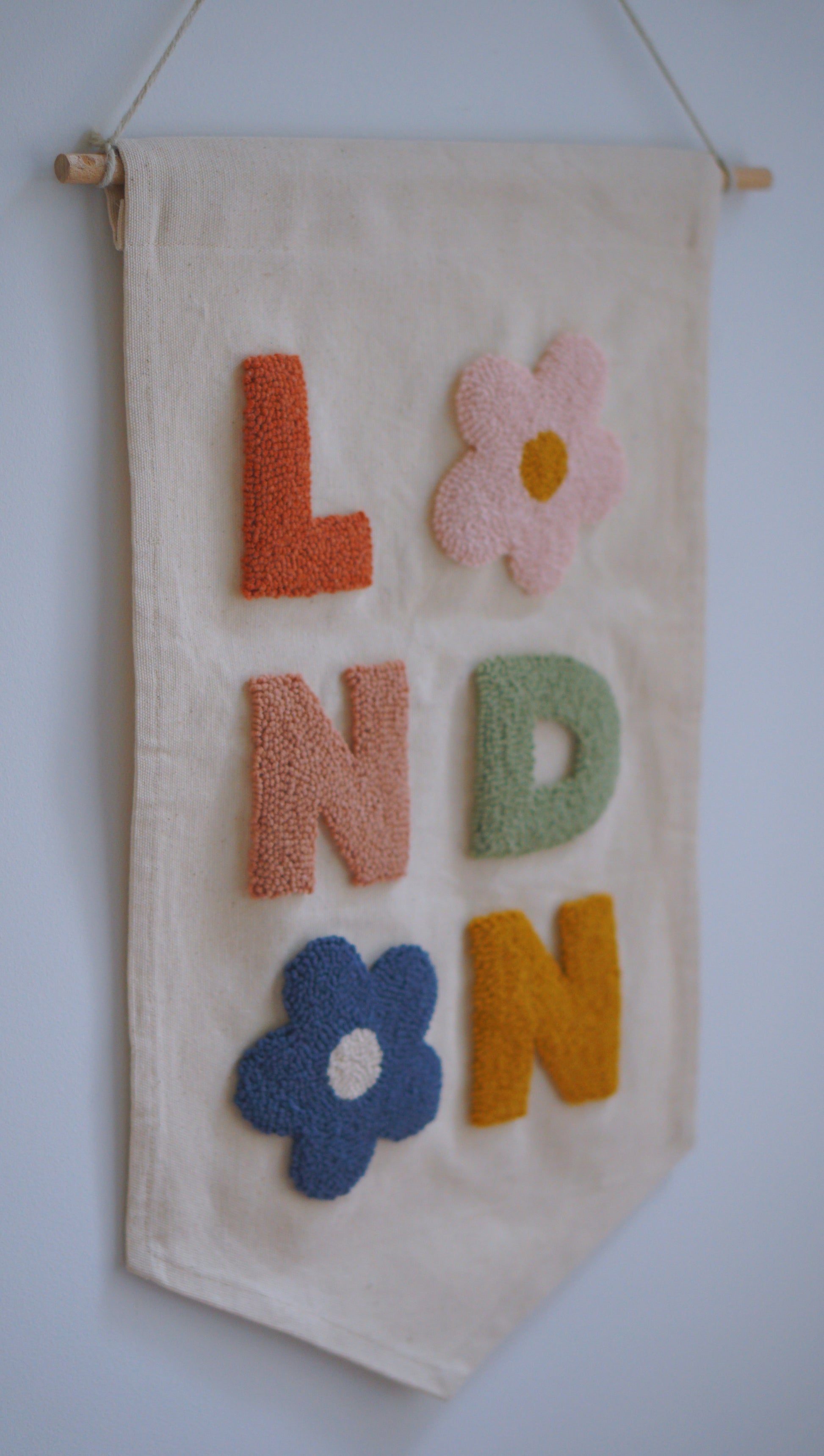 This Natural Punch Needle Embroidered Canvas LONDON Banner can be the perfect decoration for kids room!