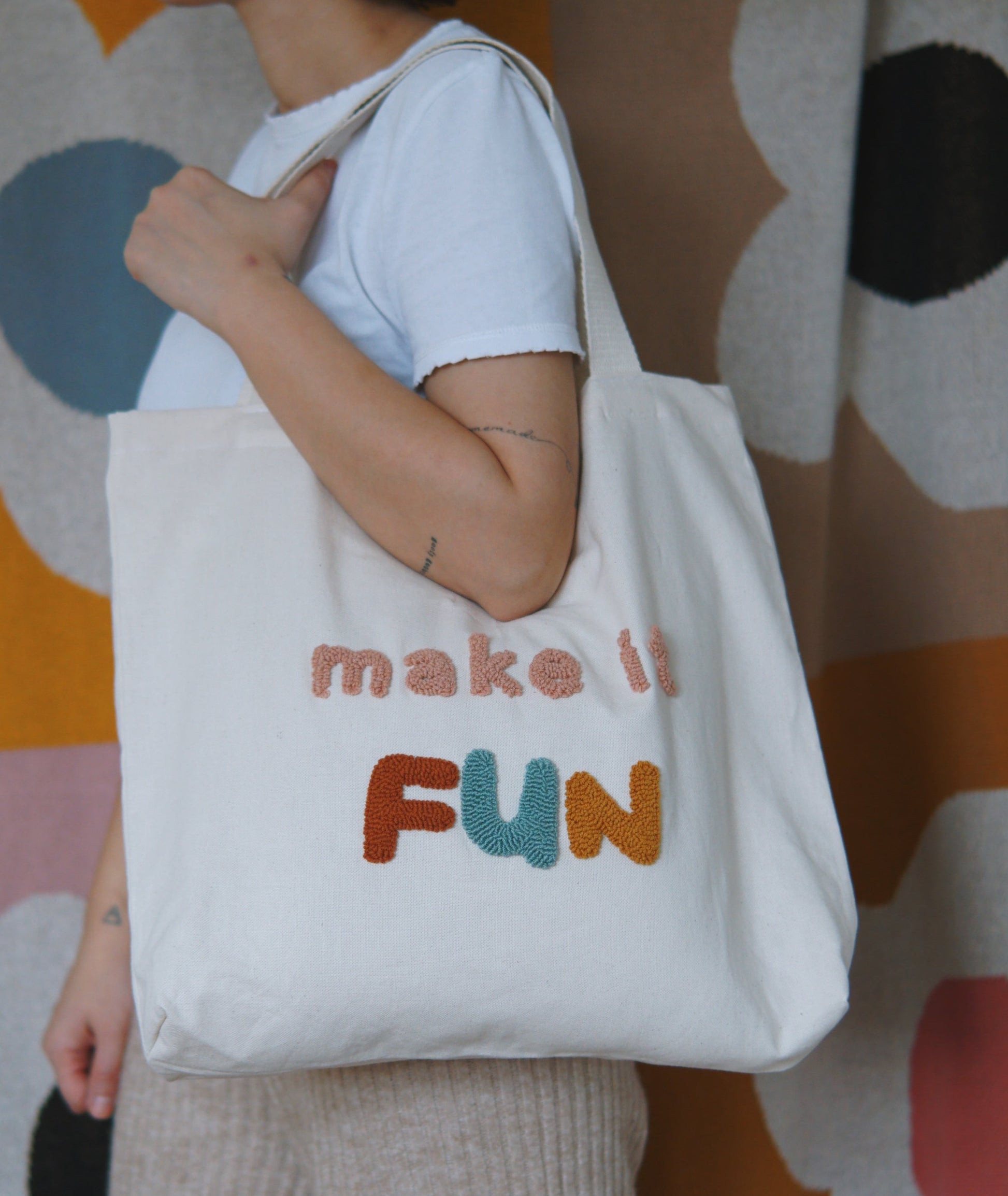 Each dutugo piece is lovingly hand tufted by using a special punch needle.
