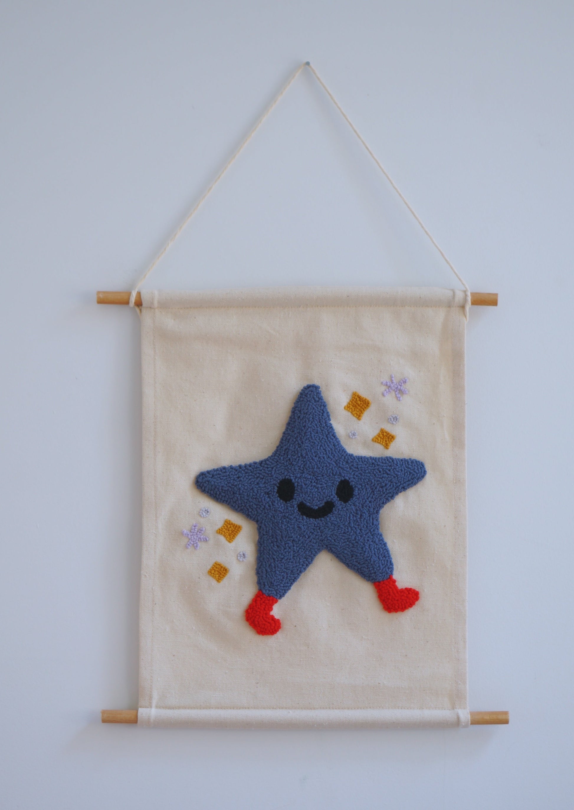 This cute decoration is lovingly handcrafted using a punch needle and features intricate handtufted details that bring this adorable design to life. Perfect for adding a pop of color and texture to your little one's bedroom or playroom, this one-of-a-kind wall hanging is sure to spark their imagination and creativity.